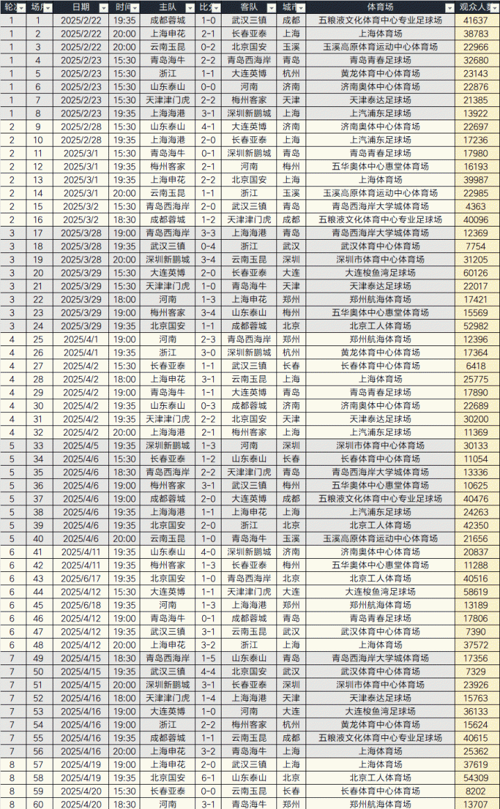 此外,2025赛季中甲联赛观众总人数为1896473人次,中乙为880295人次,三级职业联赛总人数合计为8577725人次。