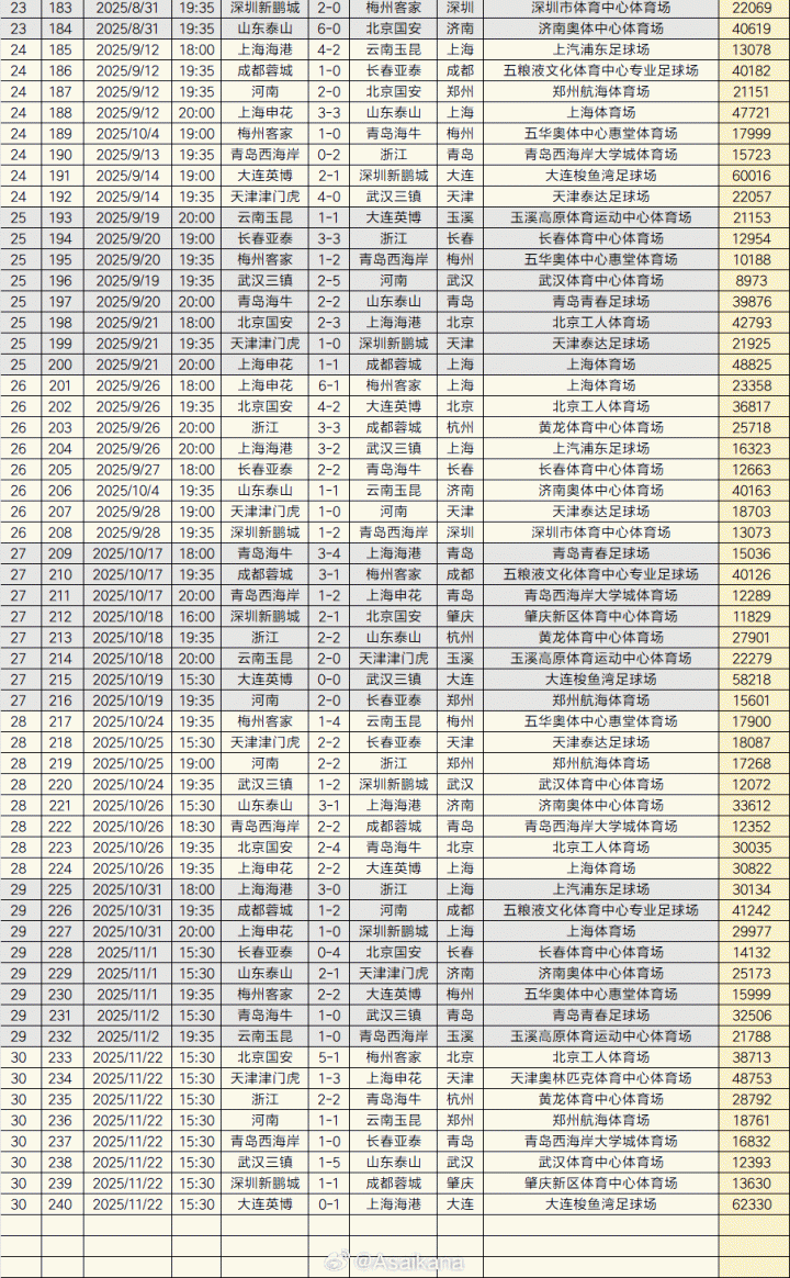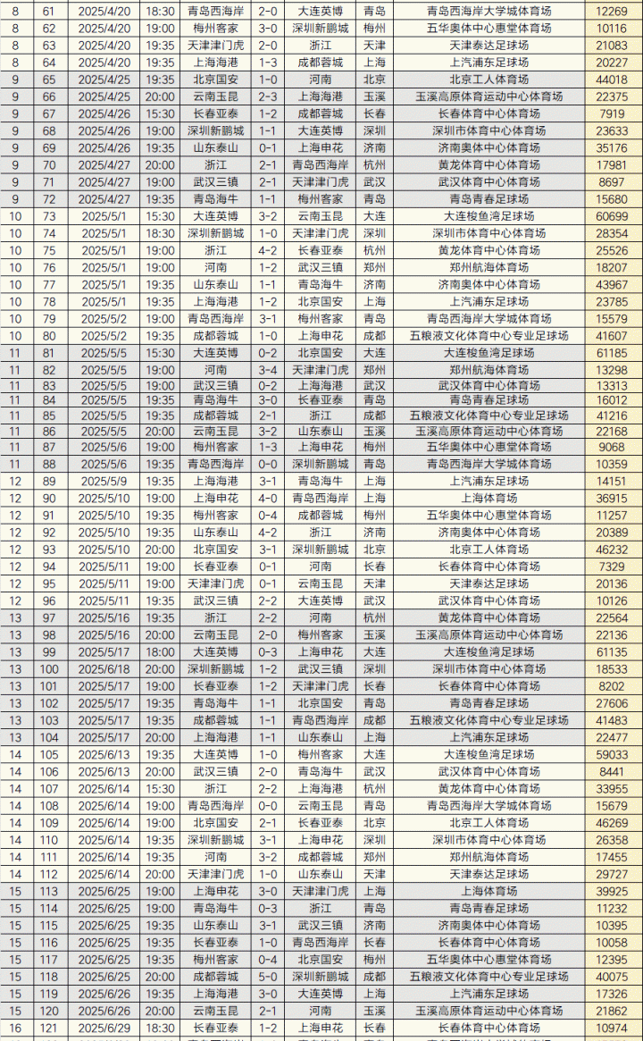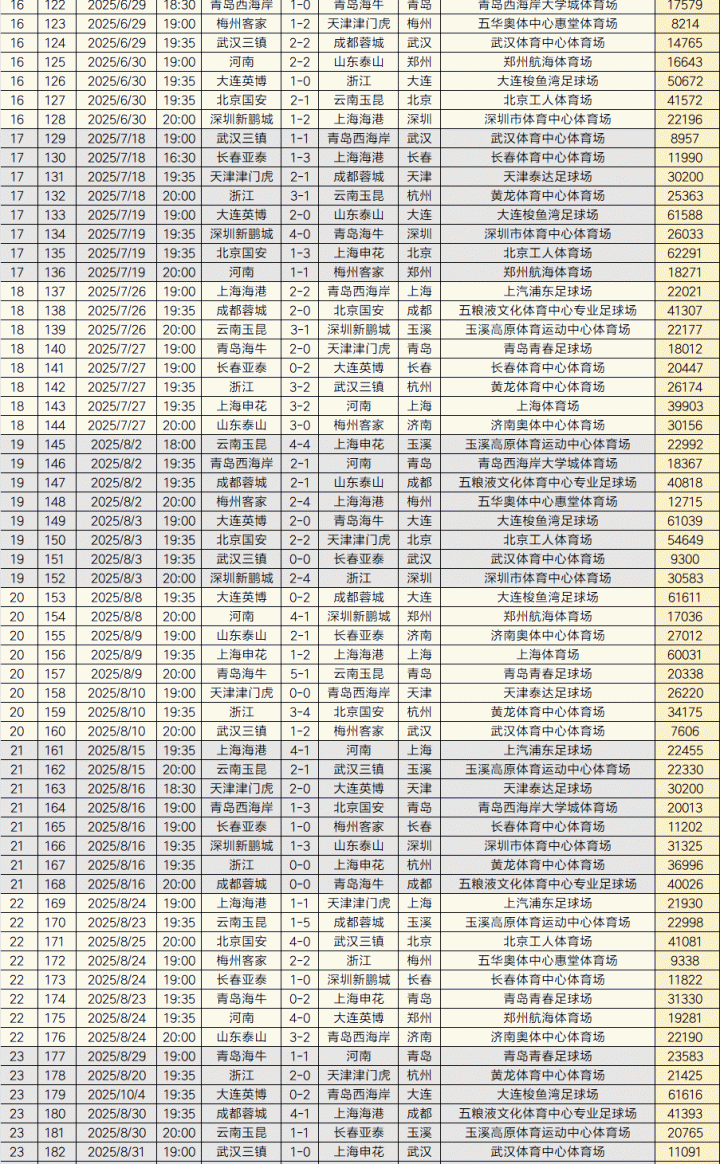 史上最火中超!2025赛季中超告一段落,240场比赛现场观众总人数6180990人次,场均25754人,中超历史上总人数首次突破600万大关,创下历史新纪录,此前最高纪录是2016赛季中超的5800957人次。