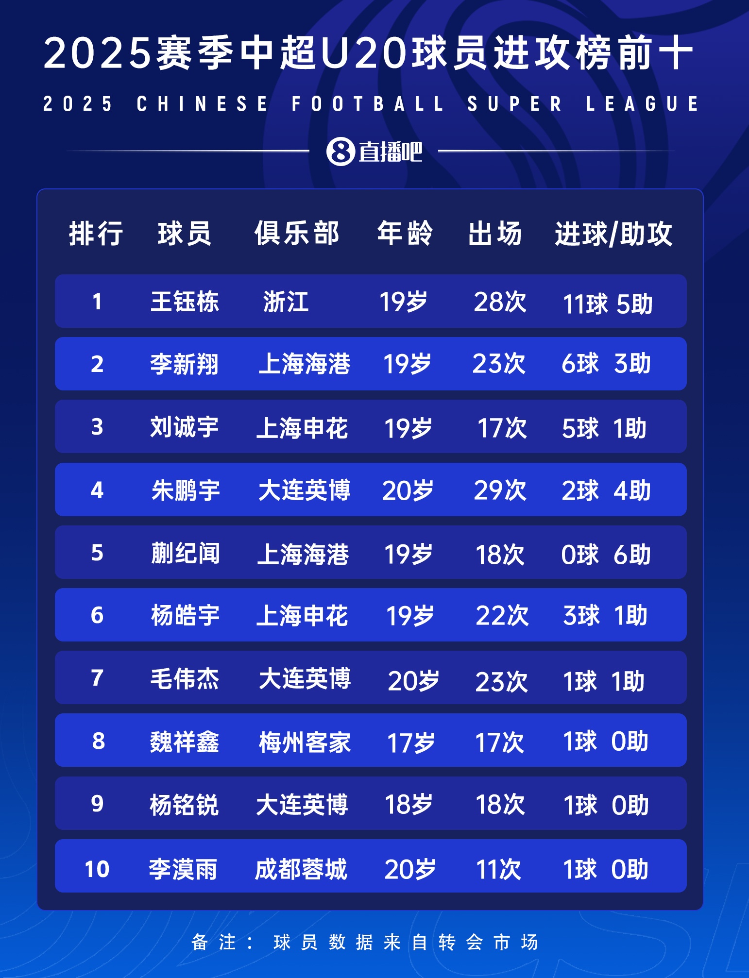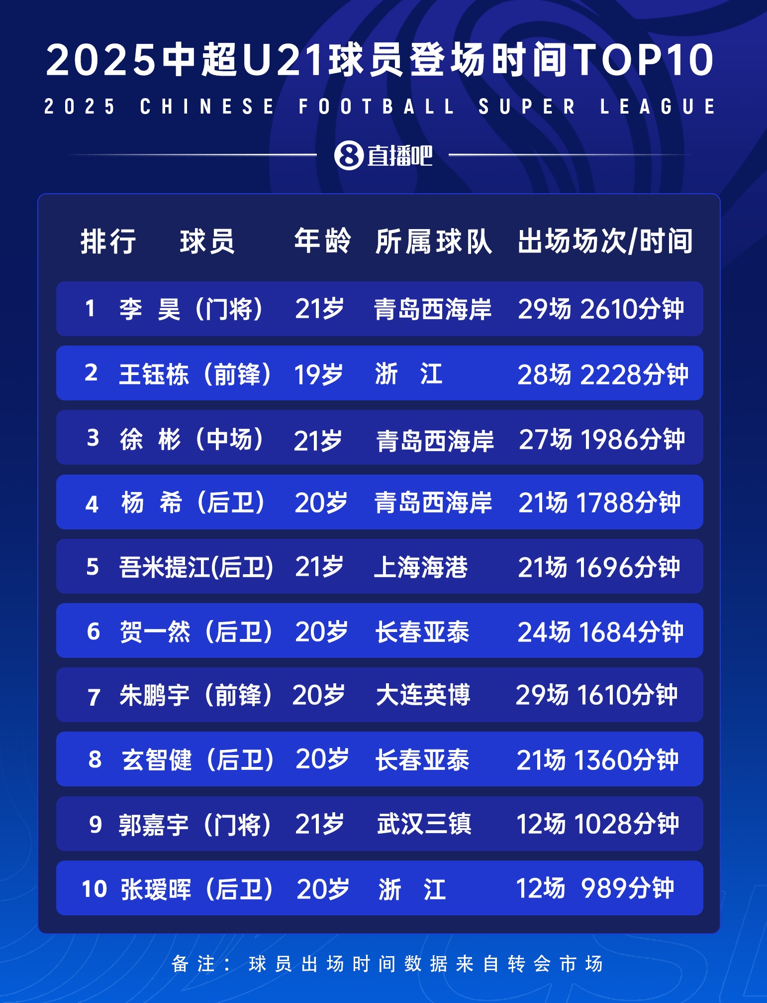 2025赛季中超联赛大幕落下,上海海港成功卫冕,梅州客家和长春亚泰降入中甲。在漫长的9个月征程中,外援撑起了各队的战术框架,本土中生代球员和老将发挥着关键作用,在这两股力量的夹缝中,U20球员艰难地寻找着上升路径。在王钰栋、朱鹏宇、李新翔、徐彬和魏祥鑫等人的惊艳表现背后,更多初涉中超的小将还在为跻身轮换阵容而拼搏。
